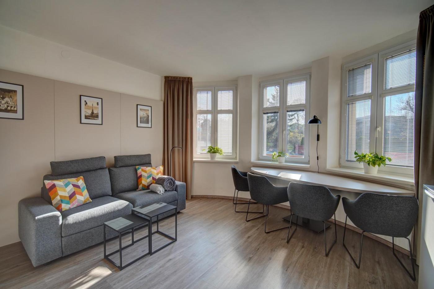 Chopin Manor se nachází 44 km od ubytování Moderní apartmán Vila Domus a Szczytna 49 km. Letiště Pardubice leží 47 km daleko.